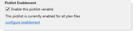 Your plan files may be designed so that certain picklists only apply to plan files that meet a certain criteria. You can use picklist variables to dynamically enable or disable certain picklists as follows: