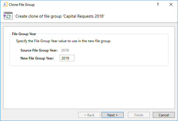 By default, the new file group year is set to the same year as the original file group year.