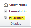 This only determines the initial state of the row and column headings. Once the file is opened, users can choose to toggle the headings shown or hidden for the current session by using the Headings check box in the Display group of the Axiom ribbon tab (or by using Excel functionality).