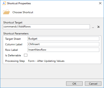 If the shortcut is to a form-enabled file, then you must complete the following shortcut parameters: