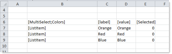 • Select tags in Formatted Grid components can be configured to allow multi-select. In this case, the selected items are written to the target cell using a comma-separated list. For more information, see Using drop-down lists in Formatted Grids.