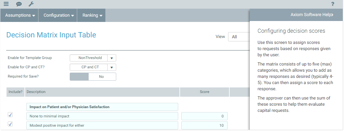 Placement and configuration of a Form Help component on the Axiom form canvas. When configuring the component, you specify which help code it should use.