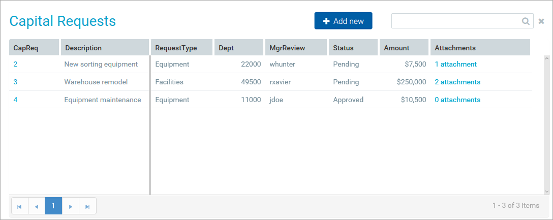 To open a plan file, users click the hyperlink in a designated column. In the following example screenshot, the CapReq column is the designated hyperlink column.