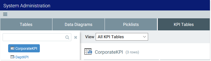 You can create new KPI tables as needed. Only administrators and users with the Administer Tables security permission can create new KPI Tables.