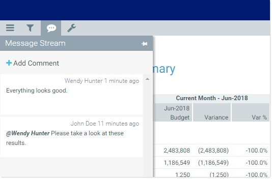 All users with access to the document can see comments posted to the message stream. Any comments made should be appropriate for the entire document audience. Do not post any sensitive information to the message stream.