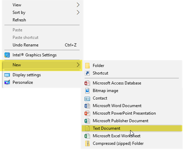 Right-click on an empty space on the desktop, then select New > Text Document.
