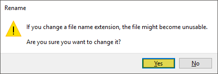 When prompted, click Yes to confirm that you want to change the file name extension.