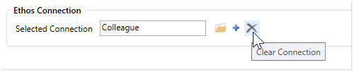 Ellucian Ethos connections are managed using the separate Manage Connections dialog. Using this dialog, you can create, edit, and delete connections, and designate default connections.