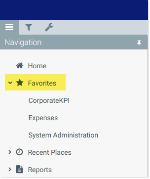 Example favorites in Navigation panel