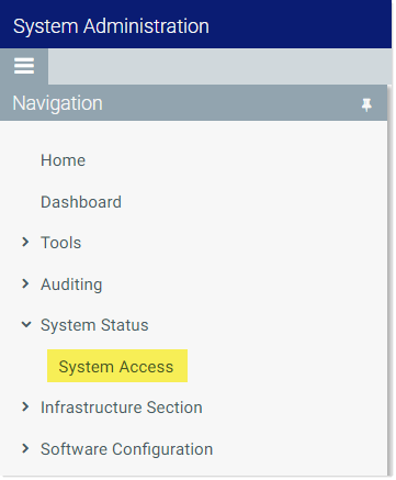 NOTE: In systems with installed products, this feature may be present on the Admin tab. In the System Management group, click Security > System Access.