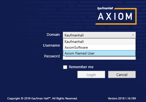 Users will be able to authenticate to Axiom Software using their Windows AD domain credentials once they use login information that matches your Windows AD domain, Axiom security has the correct information and configuration, and system access is not restricted to administrators only.