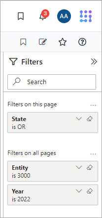 While you are in a visualization report, you can save the current report-level filter or page-level filter to the Filter Library for reuse. When saving a filter, all filter cards in the selected context are saved. For example, if you are saving the report-level filter, and there are currently three filter cards in the Filters on all pages section of the Filter pane, then all three cards are saved in the filter. If later the saved filter is applied to another report, all three filter cards will be applied.