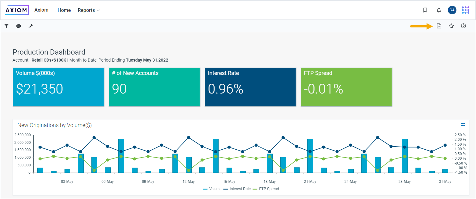 Specifies whether to show the PDF icon in the Task bar The gray bar that displays across the top of browser-based Axiom files, as well as various feature pages of the Web Client. The Task Bar provides access to various tasks that are specific to the current area, page, or document.. By default, this option is not enabled. |