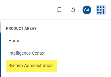 in the Navigation bar The blue bar across the top of pages in the Web Client. The Global Navigation Bar provides access to system-wide features.. From the Area menu, select System Administration.