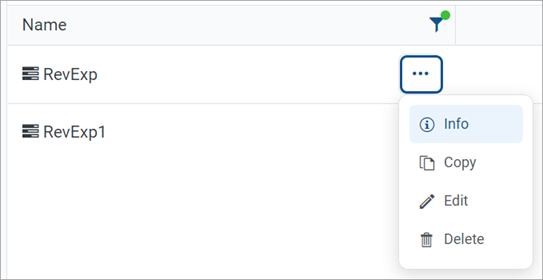 Locate the fixed row structure that you want to copy, then hover your cursor over the Name column to make the three dots icon visible. Click the icon then select Copy from the menu.