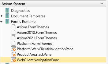 In the Axiom System > Forms Runtime folder, delete WebClientNavigationPane.