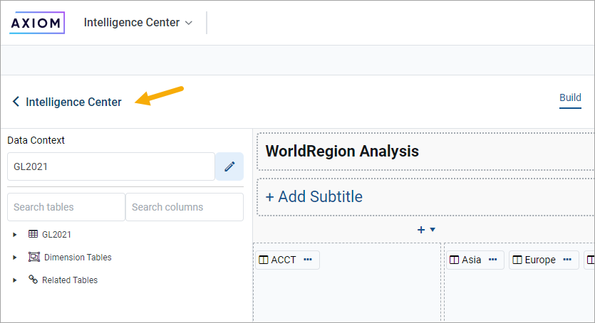 An Intelligence Center breadcrumb is now available in the Report Builder, to quickly exit the report and navigate to the Intelligence Center.