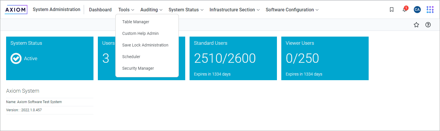 Example System Administration menu in updated navigation bar