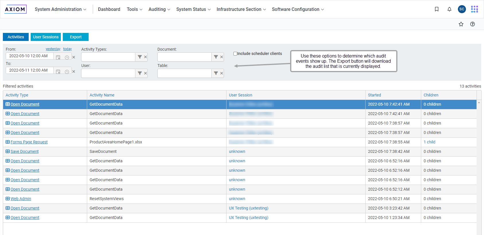 To improve productivity and maximize your understanding of how Axiom is used, you can now export audit logs to Microsoft Excel for further analysis.