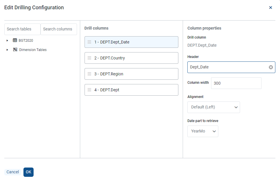 You can now configure the DatePart in a drill column configuration.