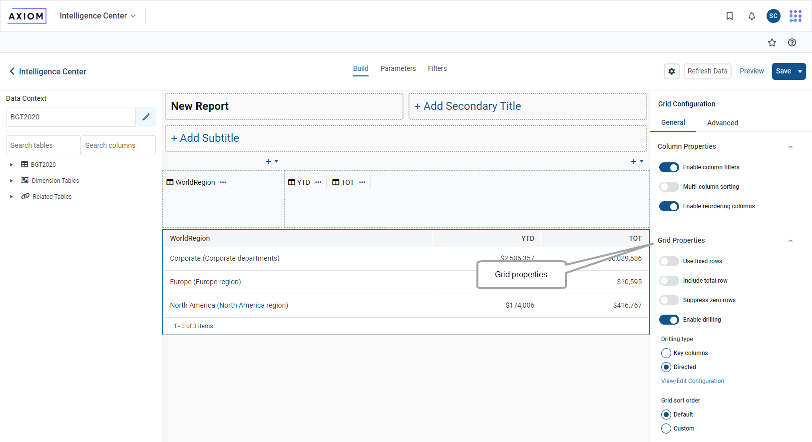 Grouping of column configuration properties in Report Builder