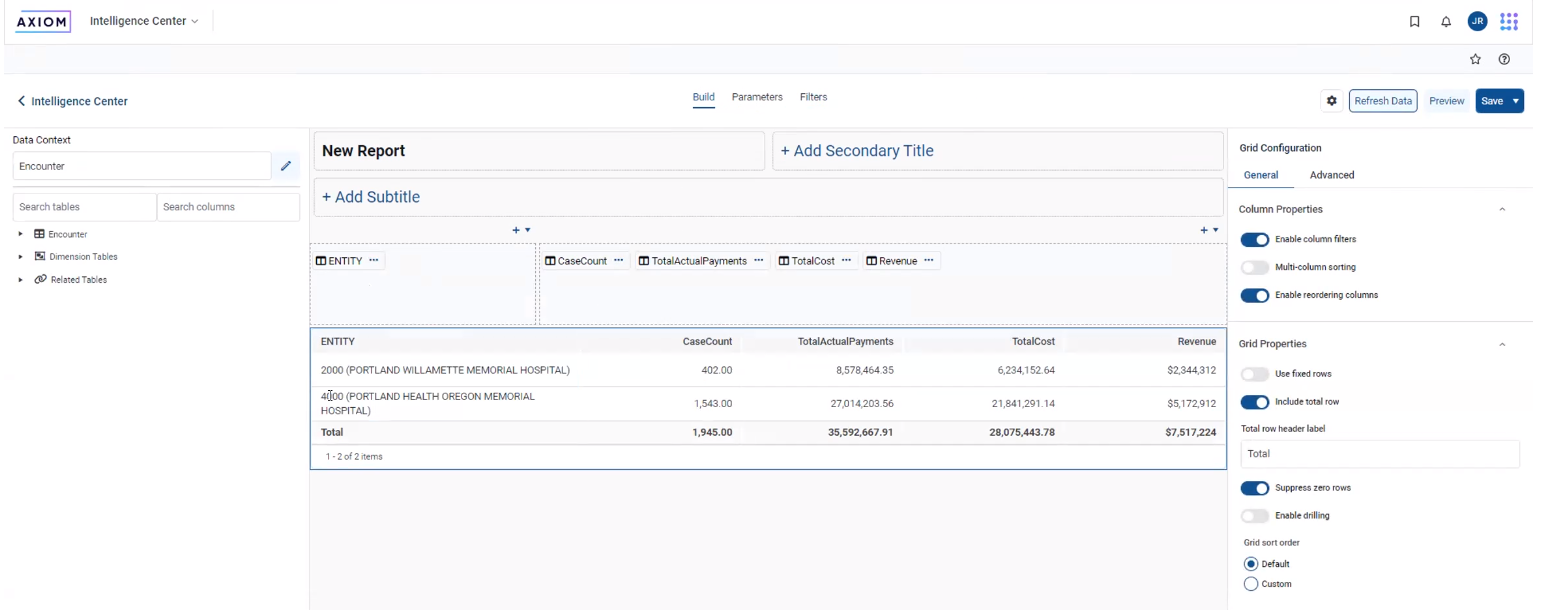 The Filter Wizard in the Report Builder has been redesigned to make it easier and more intuitive to create filters that impact report data. The new Filter Wizard is available to create report-level filters, as well as filters on individual columns, calculations, and column groups. Improvements include: