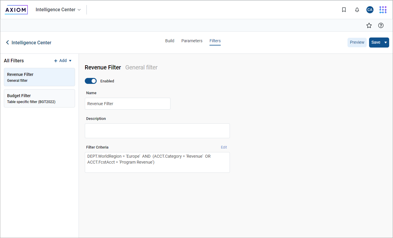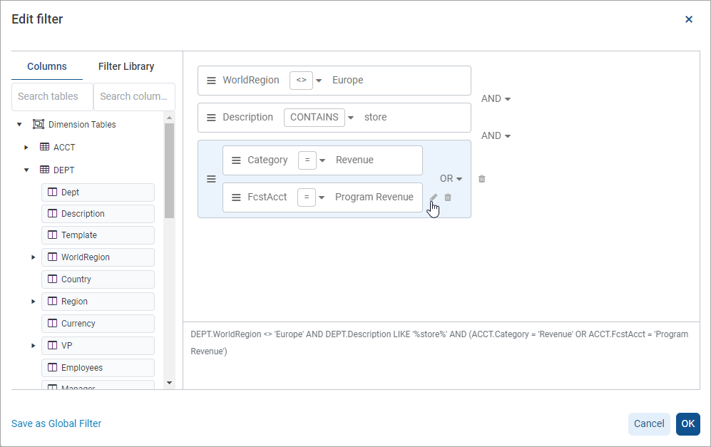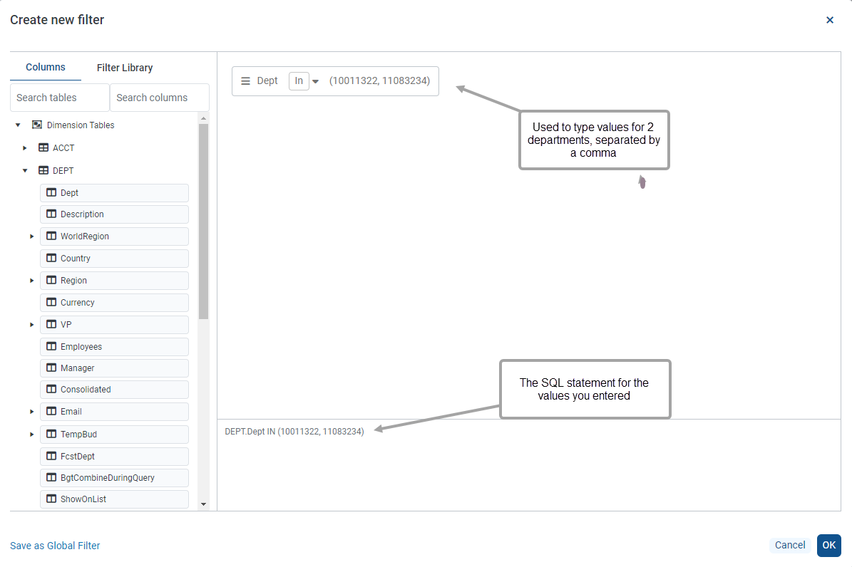 For more information on using global filters, see Using global filters in the Report Builder.