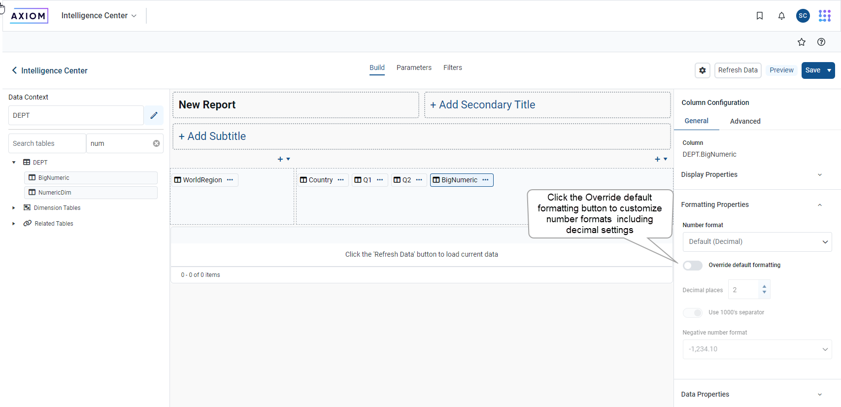 You can now more easily change the format of numbers in your report. When you build a report, this feature is turned off: