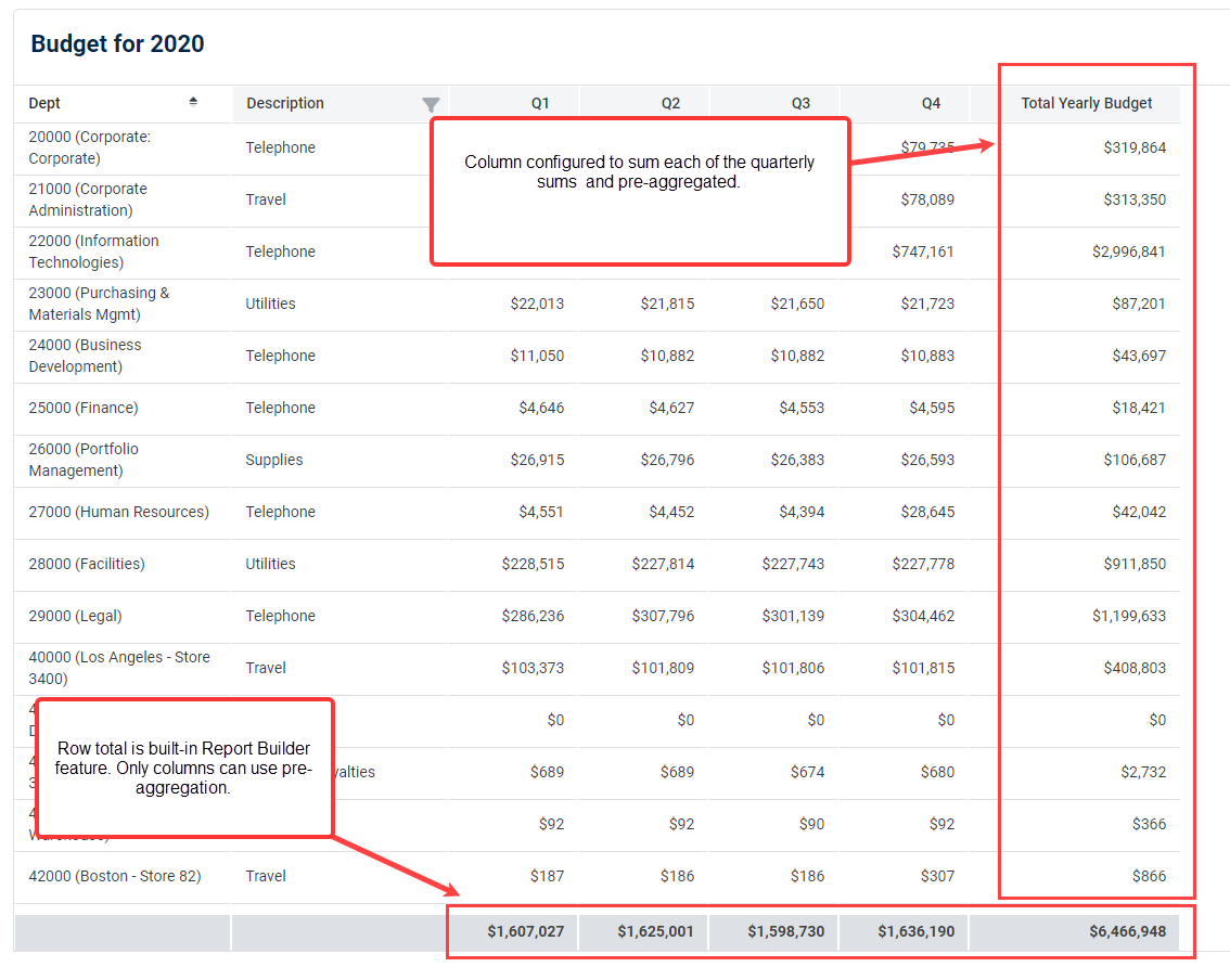 Example of report with pre-aggregated columns