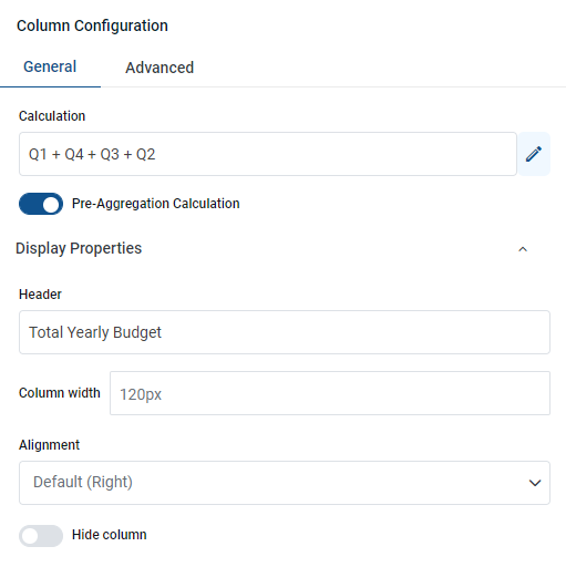 Configuring column with a pre-aggregated calculation