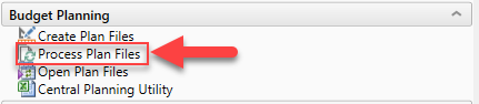 In the Axiom Budget Admin task pane, in the Budget Planning section, double-click Process Plan Files.