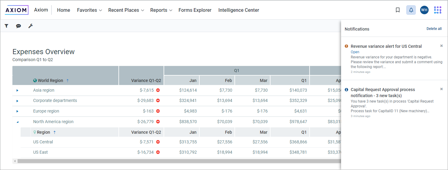 • Axiom system processes such as Process Plan Files. If you have triggered certain system processes, Axiom will notify you when the process is completed or when errors occur.