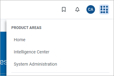 If you are in a system with installed products, the Area menu will contain product names instead of the Home item. In that case, you can select a product name to return to the home page for that product.