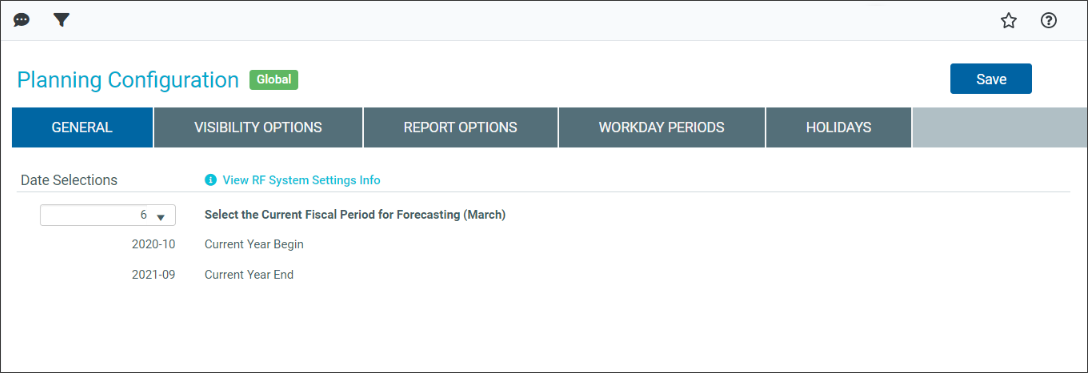 (Optional) To view planning and system information, click the View System Info link. The page expands to display date information, the selected planning type, and system settings. To collapse this information, click Hide System Info.