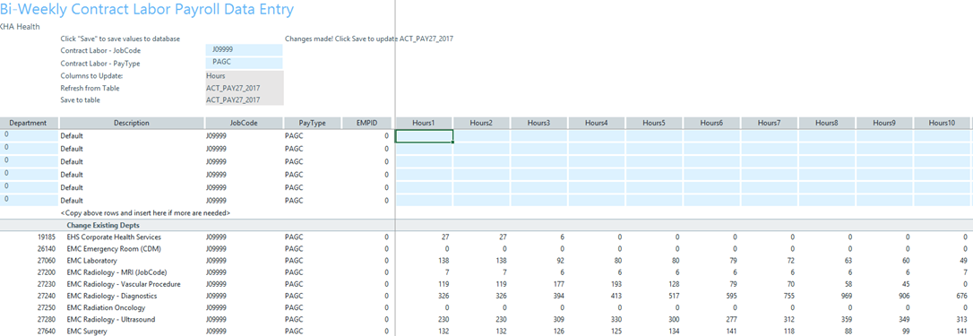 Use as an input report for biweekly contract labor hours data collection. You enter biweekly hours and then post them to the database from this report.