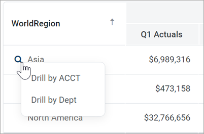 Directed: Users can drill to view the underlying data based on predefined drilling paths. The report designer defines the available drilling paths and can configure certain display attributes for the drill.