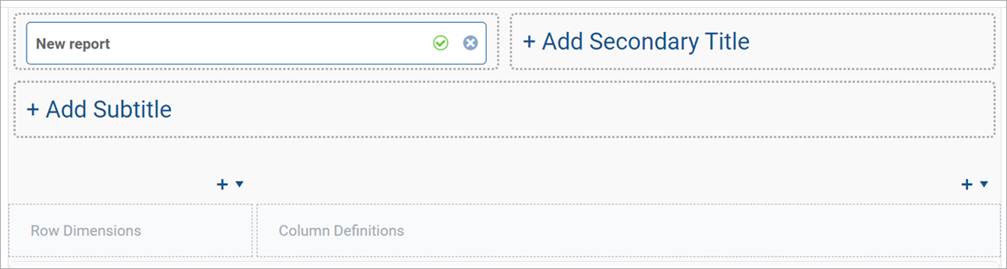 The Title, Secondary Title, and Subtitle are all defined in separate boxes that roughly correspond to where the titles display in the rendered report.