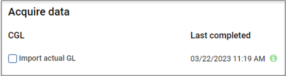 • Date and status from the last GL import for the cost model are displayed.