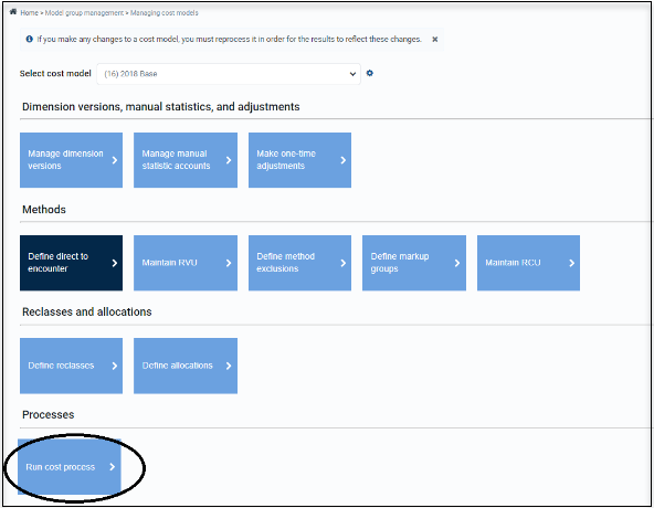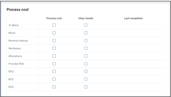 To make processing more streamlined and transparent, Syntellis redesigned the Cost Processing page. The result is one central page where you can manage and review all steps that are related to costing.