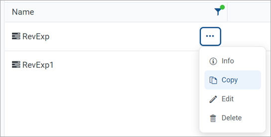 Locate the fixed row structure that you want to copy, then hover your cursor over the Name column to make the three dots icon visible. Click the icon then select Copy from the menu.