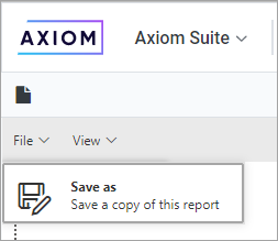 In the left-hand side of the report editor toolbar, click File > Save As.
