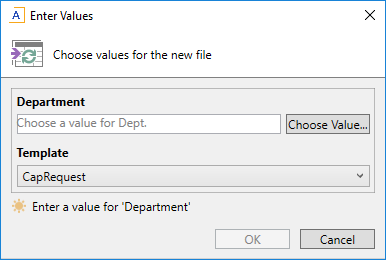 Example dialog to prompt the user for values