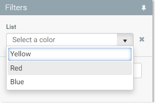 • A comma-separated list of values to display in the list. For example: Yellow, Red, Blue. (Alternatively, semicolons can be used as the delimiter.)