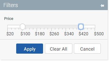 For example, you can use the range slider variable to prompt users to select the top and bottom values of a price range. The report can then be filtered to only bring in rows where the price falls within that range.