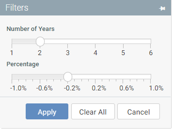 For example, you can use the slider variable to prompt users to select a number of years to show in the report. The value can then be used to impact the number of columns that are included in the query (or just which years are currently visible).