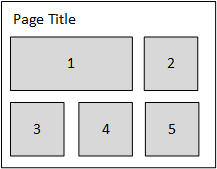 For example, imagine that you have five main content blocks. These "blocks" could be components such as the Announcements component, the Process Summary component, one or more Formatted Grid components, and one or more chart components of various types. You want these content blocks to automatically flow to fit the page, so that on a wide screen the components might look like this: