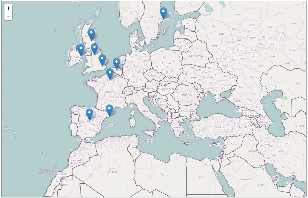 • Zoom in and out icons will display on the map so that users can change the zoom level.