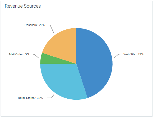 The Axiom form could contain a pie chart that shows a breakdown of revenue sources. If you want users to be able to see more details about the data in any particular slice, you could set up a second chart that references the selected label of the first chart. For example, if the user selects the Retail Stores slice in the first chart, the second chart will be updated to show revenue by individual store.