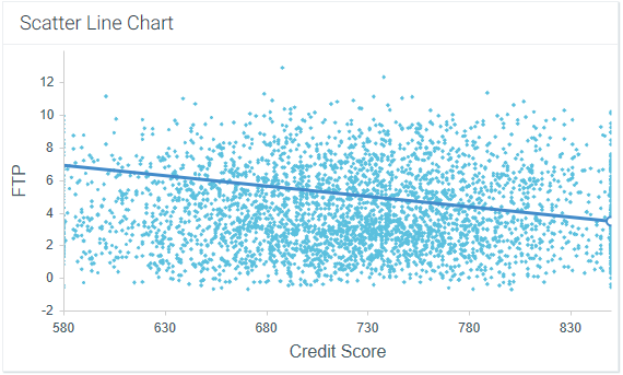 The Scatter Line Chart component illustrates data with two variables using a linked collection of points, where one variable determines a data point's position on the horizontal axis, and a second variable determines the data point's position on the vertical axis.