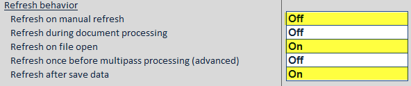 You could also use a combination of these options—for example you might toggle the Refresh on manual refresh option on or off depending on whether the update was triggered by the formatted grid or not.